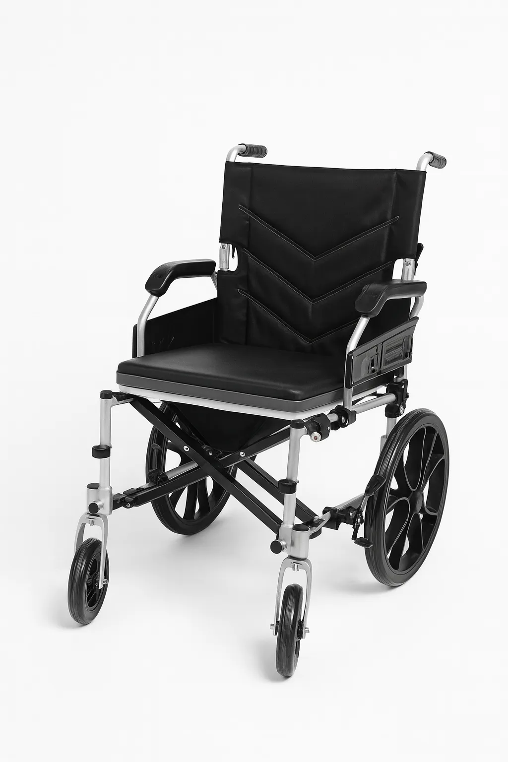 ویلچر آلومینیومی دو کاره حمام و دستشویی مدل AL695 بدنه تمام آلومینیومی ضد آب و ضد زنگ است که علاوه بر لن پلاستیکی ، قابلیت قرارگیری روی توالت فرنگی را نیز دارد.